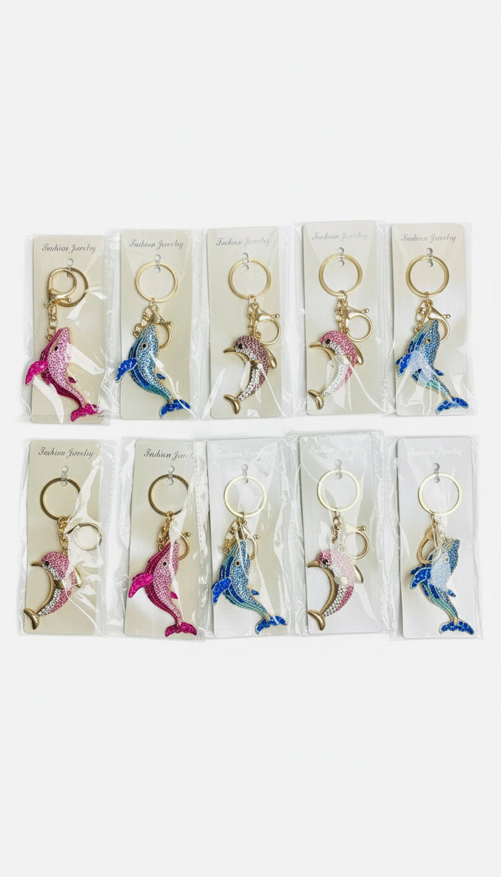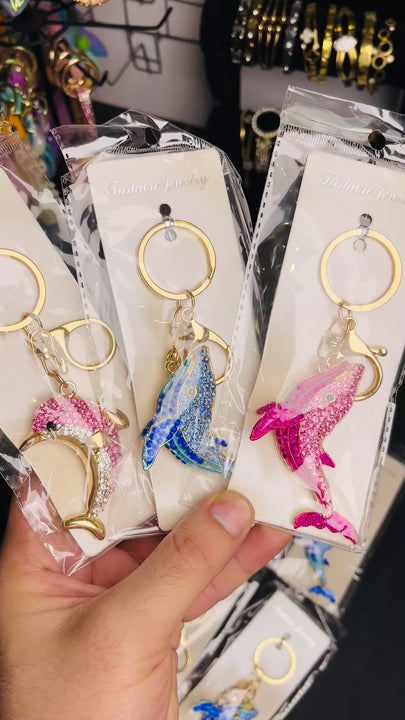 Make your keys or bag shine with our Crystal Dolphin Keychain, beautifully crafted with sparkling rhinestones and a gold-tone key ring. Available in stunning colors like pink, blue, and hot pink, each dolphin charm adds a touch of fun and luxury to your everyday look.