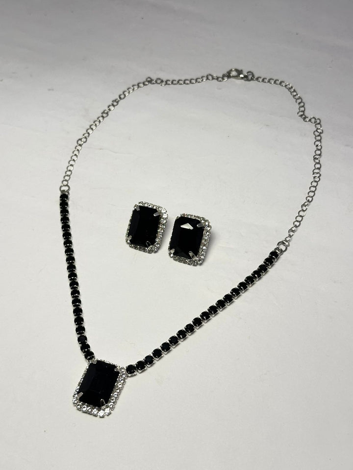 Channel timeless glamour with this striking Black Onyx (or Black Crystal) Jewelry Set. The ensemble features a bold, centrally placed rectangular black gemstone—cut in a classic, deep facet—which is exquisitely framed by brilliant micro-pavé rhinestones.