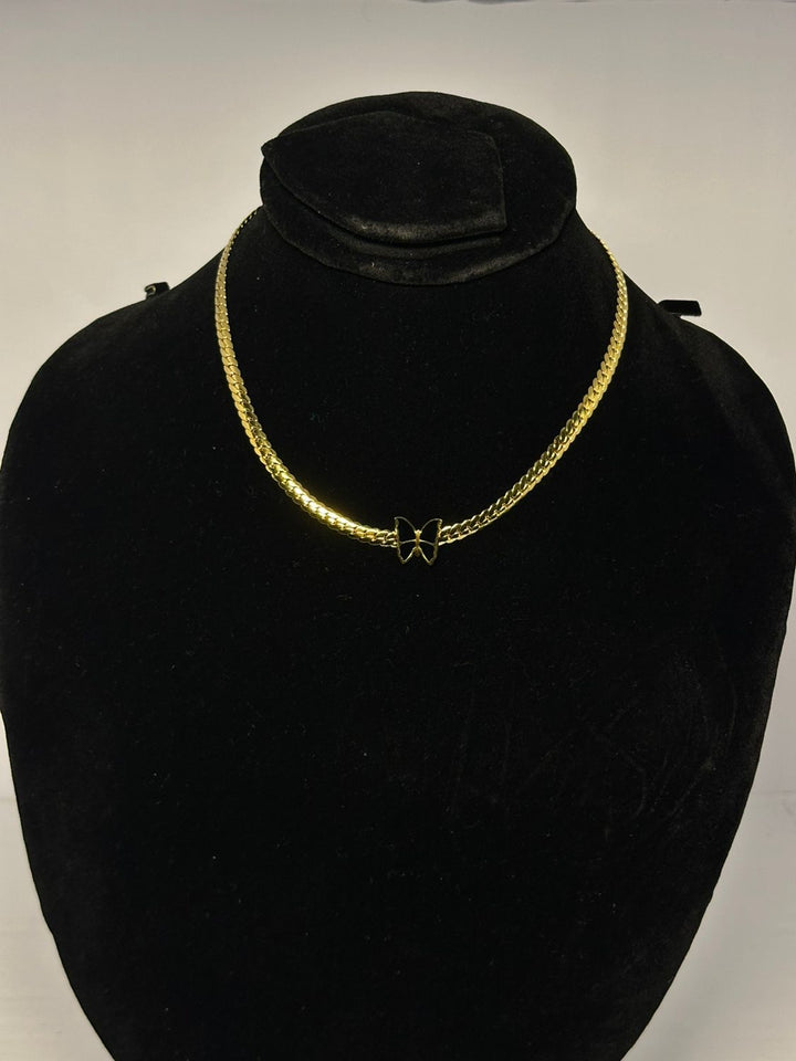 Chic Gold-Tone Cuban Choker with Black Butterfly Charm
