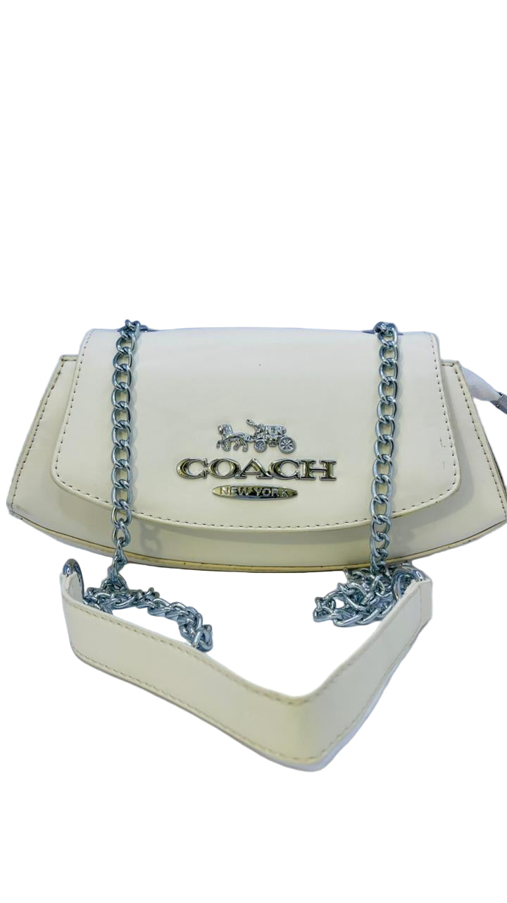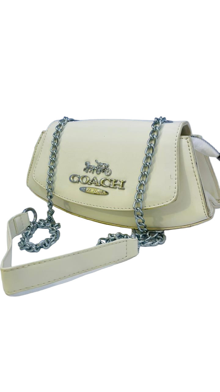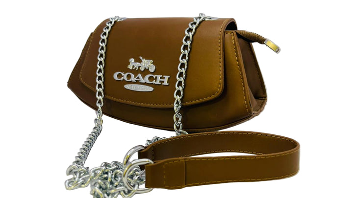A modern icon crafted from polished pebble leather, featuring Coach’s signature “C” logo and a delicate chain strap — effortlessly blending elegance with everyday ease