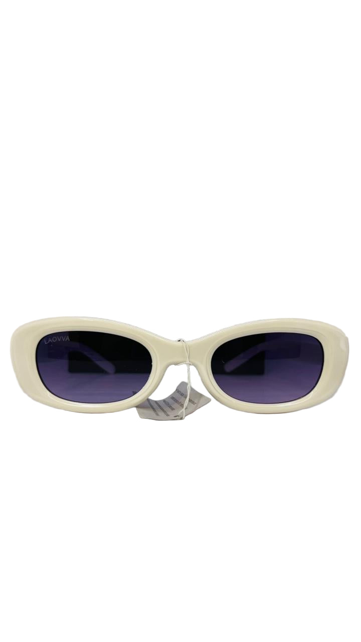 Retro Oval Sunglasses – Cream Frame with Purple Lenses Brand: LAOVVA