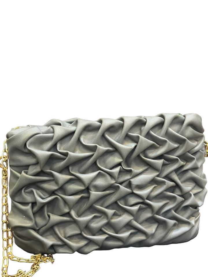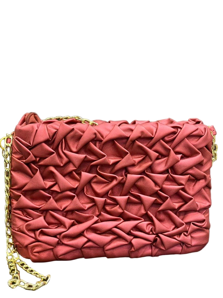 Chic, classy, and effortlessly stylish — this twist-textured handbag is a must-have statement piece. Featuring a unique ruched design with a sleek gold chain strap, it adds instant elegance to any outfit.